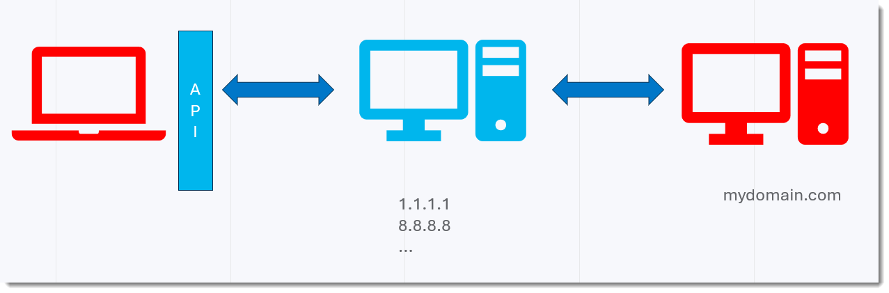 In blue are the servers of the DNS infrastructure I’m using, over which I have no control.