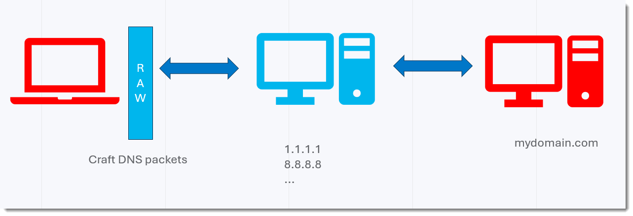 And as a third test, I’m going to craft and transmit my own DNS packets, so that I have full control: