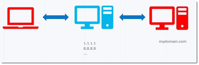 In blue are the servers of the DNS infrastructure I’m using, over which I have no control.