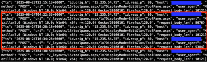 zcat 2025-08**/http*.log.gz | ~/bin/zcutter.py -d ts id.orig_h id.resp_p host method uri user_agent request_body_len | grep ToolPane | grep -v "\"request_body_len\": 0}"