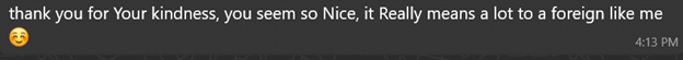 If you reply politely, the scammer usually responds with an over-the-top compliment: