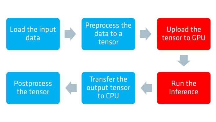 In this scenario, there are many data transfers between the CPU and the GPU that can cause unnecessary latency. A GPU is faster for pre- and post-processing than a CPU and the input data might already be on the GPU, for example, in a gaming scenario.
